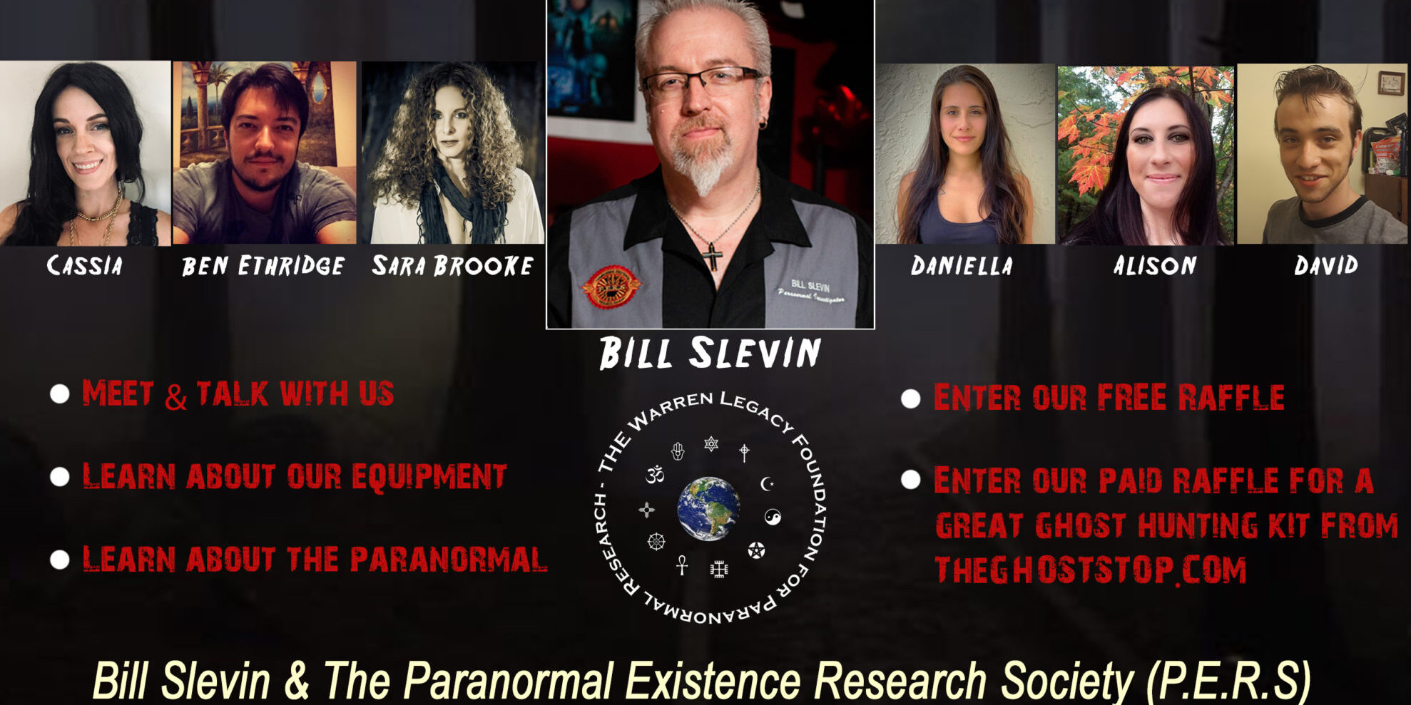 Bill and his team, The Paranormal Existence Research Society (P.E.R.S.) will be at the P.E.R.S. Booth all weekend and will also have multiple panels on the paranormal.