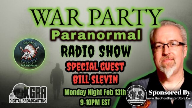 I will be a guest on the War Party Paranormal Radio Show, live Monday February 13th @ 9PM Est 2 ways to watch live: Facebook: https://www.facebook.com/warpartyparanormal Youtube: https://www.youtube.com/watch?v=jN7D_nI89Io