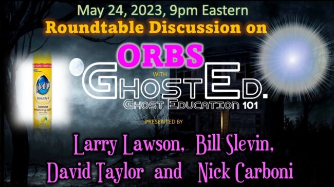 Come and join me at a roundtable discussion on ORBS hosted by Ghost Education 101 Live May 24th at 9pm EST Orbs is a hot topic in the paranormal…