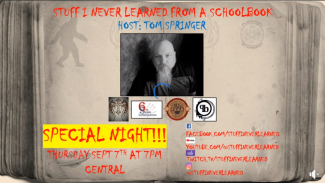 SPECIAL NIGHT!!! Friday, September 7th at 7pm Central…STUFF I NEVER LEARNED FROM A SCHOOLBOOK wants to introduce you to a few people…Come have some fun with me as we talk…