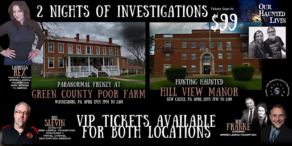 The Haunted Mafia (THM) presents its inaugural collaboration at one of the most haunted locations in the United States. Join THM for a 2 night opening season event at the Green County Poor Farm & Haunted Hill View Manor in New Castle, Pennsylvania!