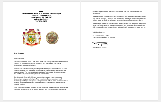 Dr. Bill Slevin, PhD was honored this week with an endorsement letter from Doctor Fr. Kenneth Torres of The Solomonic Order of St. Michael the Archangel for his decades of…