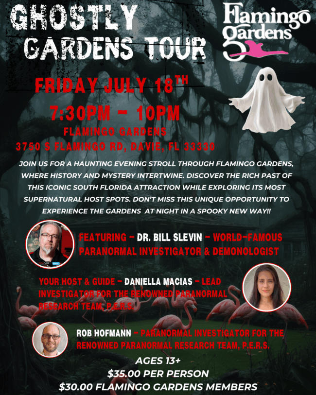 Ok South Florida people, come and be the first to experience the HAUNTED side of Flamingo Gardens in Davie! Join me and Daniella Macias July 18th from 7:30pm – 10pm…