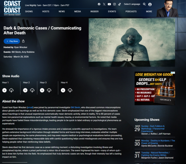 Dr. Bill Slevin live on Coast to Coast AM Radio 3/28/26